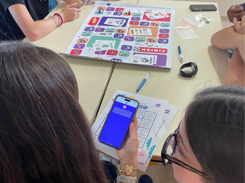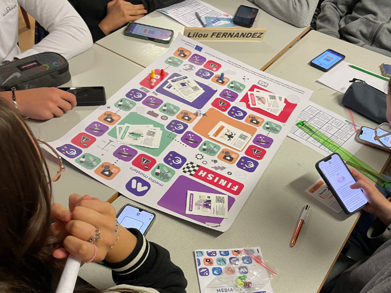À travers les lancers de dés et les cartes thématiques (par exemple « sécurité en ligne », « société et médias », « l’Union Européenne Décryptée »), les élèves de Lourdes ont dû débattre, réfléchir et décider collectivement si une information donnée était fiable ou non, confrontant leurs perceptions et stimulant l’esprit critique.