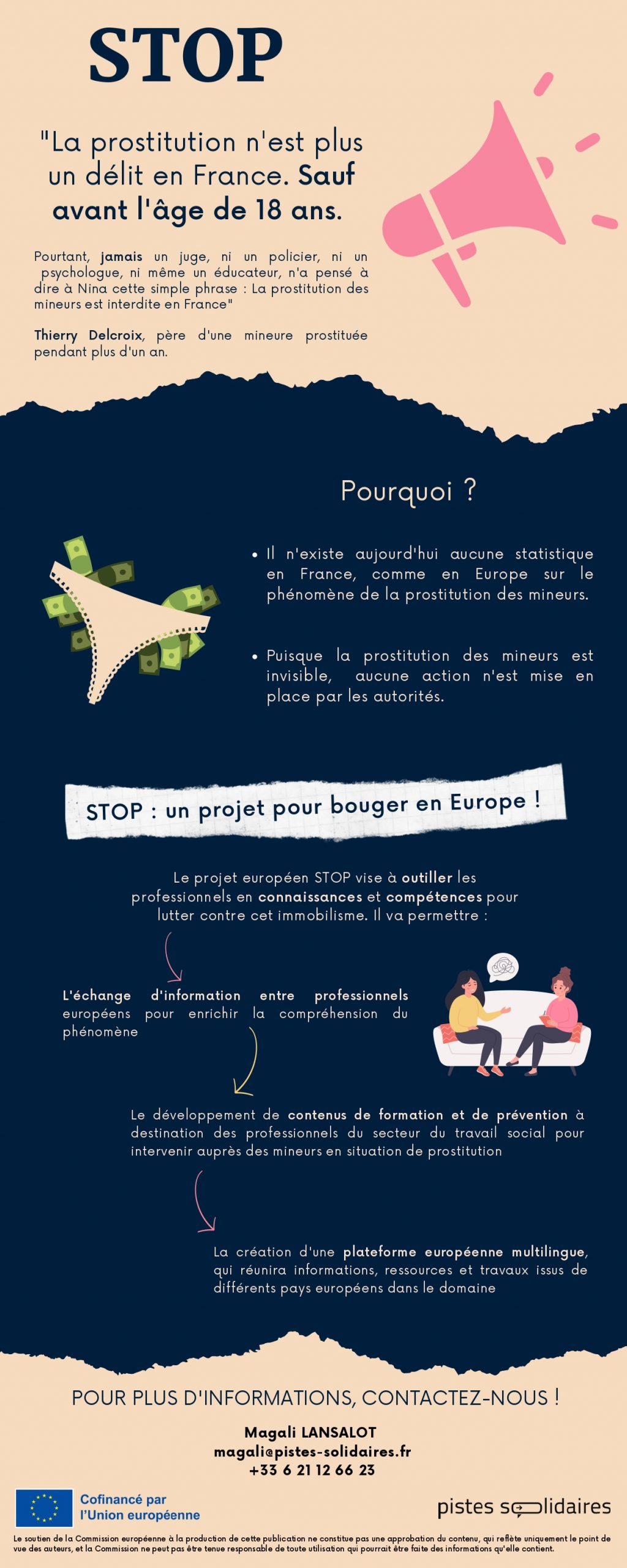 Le projet STOP – Sensitize and Train Organisations to fight against the Prostitution of minors, vise à apporter des moyens pour lutter contre ce phénomène aux professionnels de la jeunesse et du travail social.