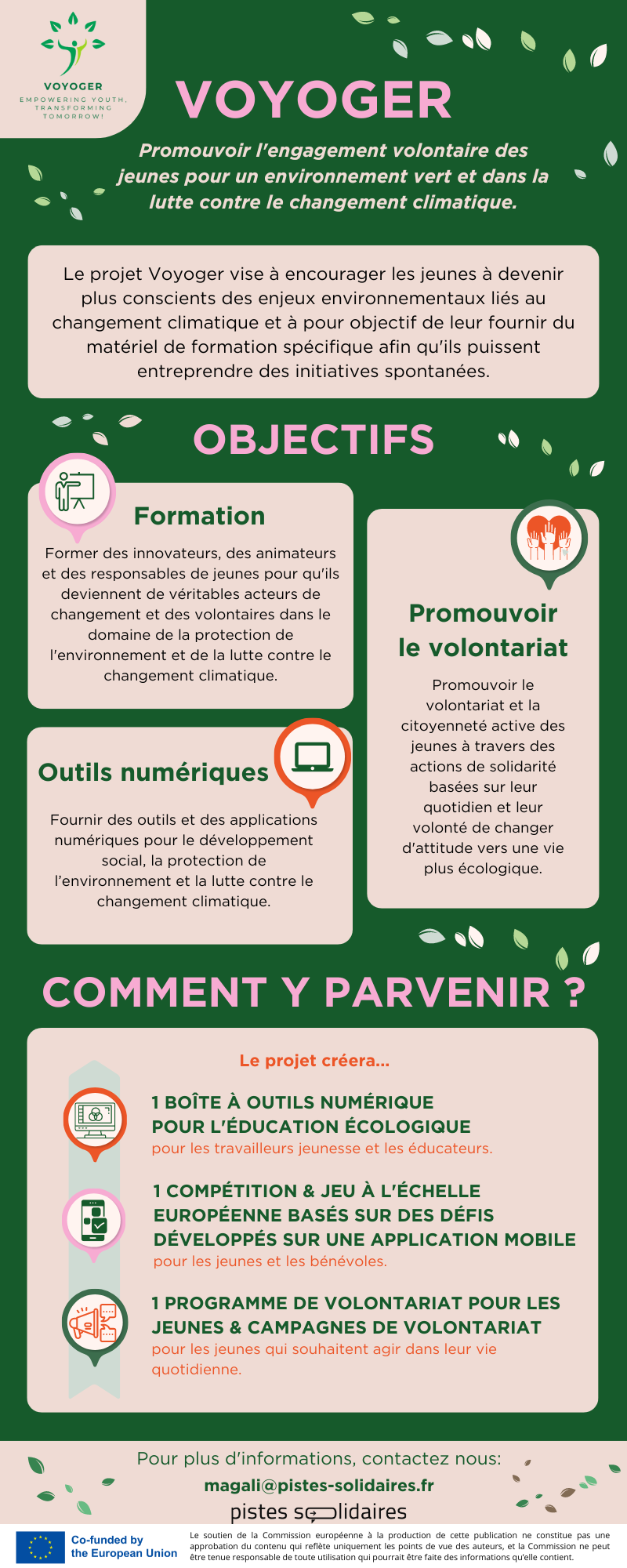Le projet VOYOGER vise à encourager les jeunes à se développer sur les questions d’environnement et de changement climatique grâce à des supports de formation spécifiques, afin qu’ils puissent agir bénévolement sur les problématiques environnementales.